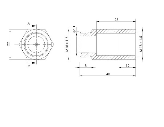 • gwinty: zewnętrzny M18 x 1,5 wewnętrzny M18 x 1,5